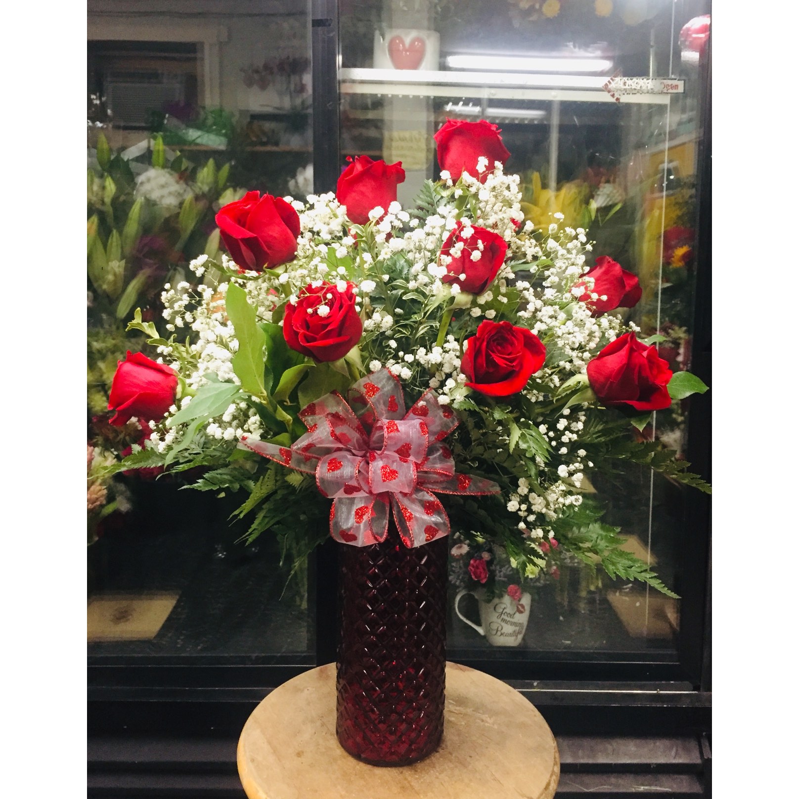Red Roses with Baby’s Breath. Flower Delivery. Valentine’s Day Flowers. Roses. Fresh Flowers. Florist. Valentine’s Day Gifts.