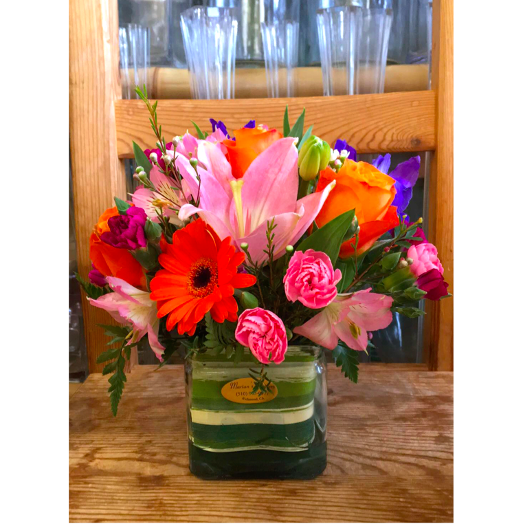 Candy Cube gerberas and lilies. Flower Delivery. Valentine’s Day Flowers. Roses. Fresh Flowers. Florist. Valentine’s Day Gifts.