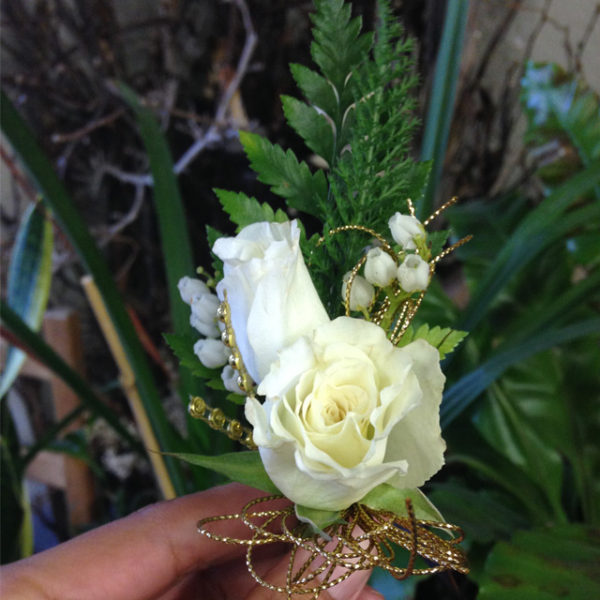 White Roses with White Fillers, Fern and Golden Details