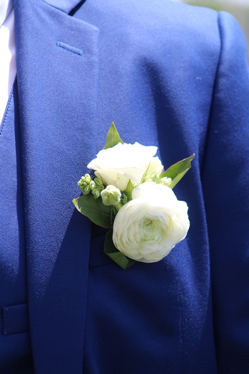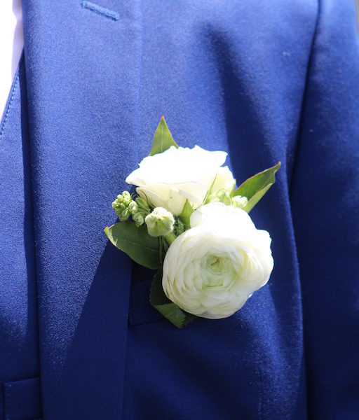 Groom’s Boutonniere, match the design of the Bride’s Bouquet or wedding theme with an elegant boutonniere.