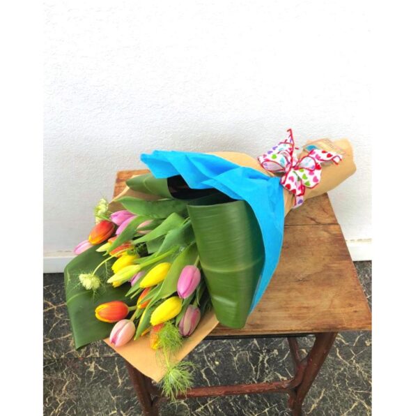 Brighten any occasion with our Seasonal Tulip Bouquet. This beautiful bouquet features 24 fresh, handpicked tulips wrapped in elegant paper.